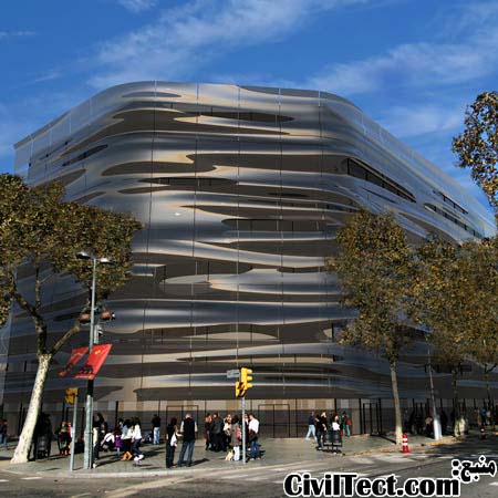 این ساختمان برای کارخانه آب معدنی H2O طراحی شده است. مهندسین اکسیس موندی که یک شرکت آمریکایی است این نمای آب موجدار را برای این ساختمان طراحی کرده اند. این ساختمان در بارسلونا و به منظور دفاتر اداری ساخته شده است. نمای آن به زیبایی تمام شکل آب موجدار را به خود گرفته است و برای ساخت آن از کامپوزیتهای پلیمر استفاده خواهد شد. سپس این نما توسط خرپاهای فولادی به ساختمان وصل میشود.