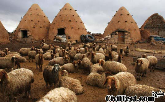این خانه ها را میتوان در گرمترین نقاط سوریه پیدا کنید. از این خانه ها هم برای سکونت و هم برای انبار محصولات استفاده میشود. ساخته شده از مصالح بومی منطقه, دیوارهای ضخیم آن باعث میشوند گرمای آفتاب به داخل نفوذ نکند. همچنین شکل ظاهری این خانه ها که بصورت گنبد ساخته شده اند, باعث میشود در بیشتر ساعات روز آفتاب تنها به یک طرف آنها بتابد و همین موضوع نیر به خنکی بیشتر آن کمک میکند. در بالای این خانه ها حفره ای در نظر گرفته شده است که علاوه بر تامین نور کافی, هوای گرم را به دلیل سبکتر بودن آن از هوای خنک از طریق همین حفره ها به بیرون هدایت میکند. با تمامی این تدابیر دمای داخلی این خانه ها بین 75 تا 85 درجه فارنهایت باقی میماند در حالی که دمای بیرون میتواند تا 140 درجه فارنهایت برسد!