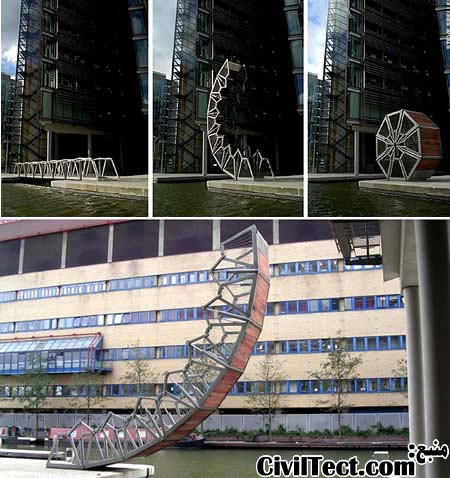 بجای استفاده از سیستم سنتی بالابرنده پلها (برای عبور قایقها و کشتی های کوچک) این پل به روشی بسیار نوین و جذاب اجازه عبور قایقها را میدهد. این پل با خم شدن تا زمانی که دو انتهایش به هم برسند و تشکیل یک دایره بدهد, از سر راه برداشته میشود.