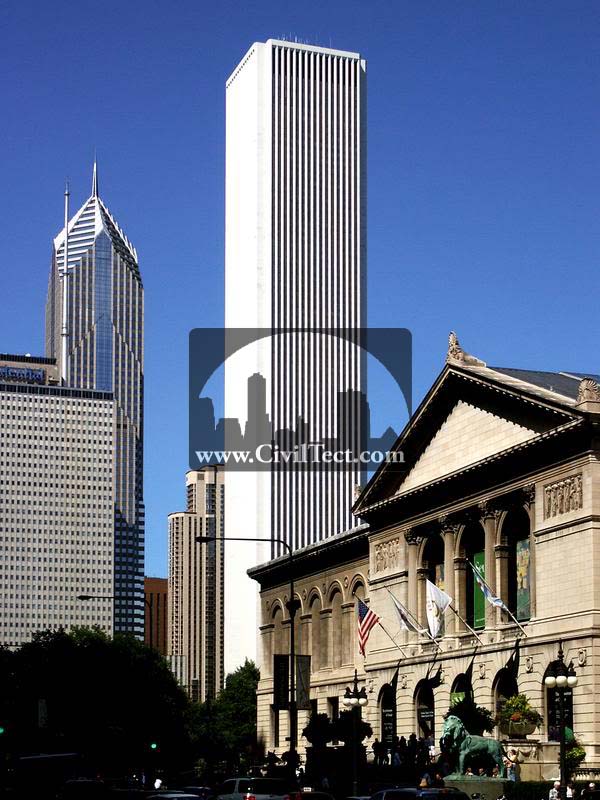 Aon Center دارای 83 طبقه و ارتفاعی برابر 346 متر دارد. که آنرا سومین ساختمان از لحاظ بلندی در شیکاگو میکند.