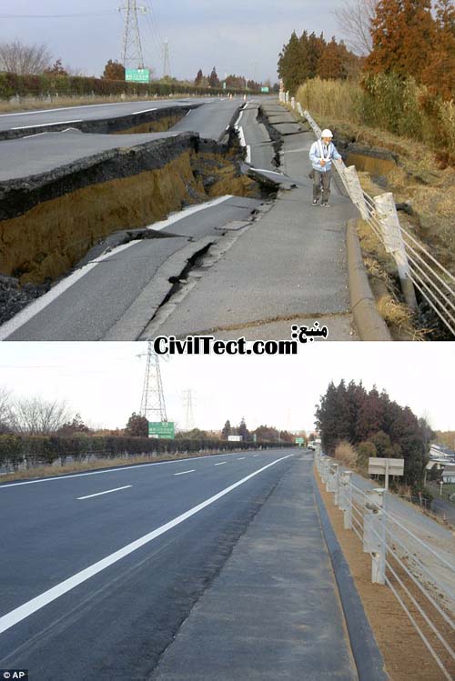 ژاپنی ها توانستند جاده ای که در زلزله 8.9 ریشتری 11 مارس 2011 تخریب شد را در عرض تنها 6 روز بازسازی کنند. آنها توانستند قدرت و سرعت خود در بازسازی مناطق زلزله زده را با بازسازی های سریع خود نشان دهند.